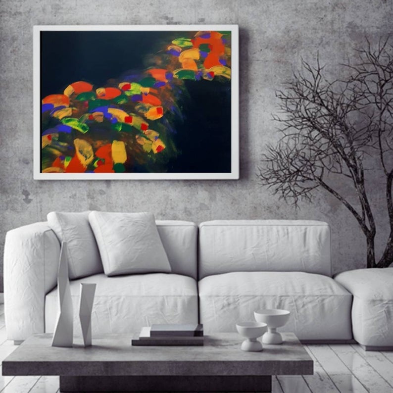 ציור בסגנון מופשט, סערה של צבעוניות על רקע שחור