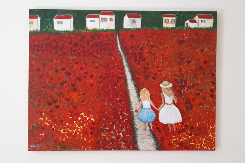 ציור נאיבי תמים שיכול להוסיף הרבה מאד צבע ואנרגיה לחדר ילדים.