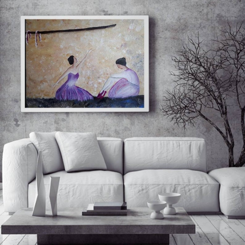 ציור מקורי בצבעים עדינים של שתי רקדניות באלט